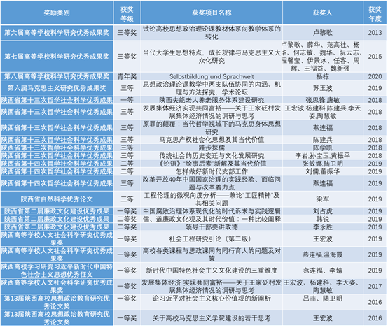 全國高校思想政治理論課影響力標兵人物1人;