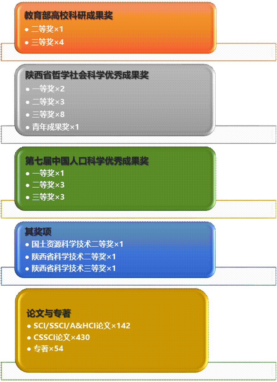 截止目前,研究院共承擔(dān)各類(lèi)國(guó)家級(jí)基金項(xiàng)目90余項(xiàng),其中國(guó)家社會(huì)科學(xué)基金重大項(xiàng)目7項(xiàng)、教育部哲學(xué)社會(huì)科學(xué)重大課題攻關(guān)項(xiàng)目2項(xiàng)、國(guó)家社會(huì)科學(xué)基金重點(diǎn)項(xiàng)目9項(xiàng)、國(guó)家自然科學(xué)基金項(xiàng)目42項(xiàng),國(guó)家社會(huì)科學(xué)基金項(xiàng)目47項(xiàng),開(kāi)展高水平國(guó)際基金和國(guó)際合作項(xiàng)目29項(xiàng)。發(fā)表SCI、SSCI、A&HCI論文142篇,權(quán)威期刊論文和三報(bào)一刊理論文章4篇,出版高水平學(xué)術(shù)專(zhuān)著54部,國(guó)家和省部批示采納的智庫(kù)成果10余次。在多個(gè)研究領(lǐng)域的研究成果已得到中央和地方領(lǐng)導(dǎo)的重要批示和肯定,并對(duì)相關(guān)的公共政策產(chǎn)生了積極影響。